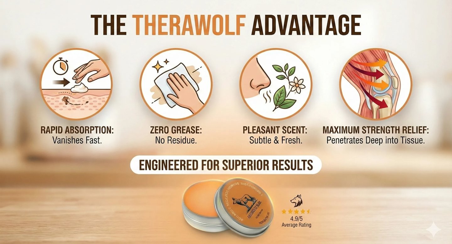 TheraWolf Balm We focus on customer satisfaction by providing clear product information, secure ordering, fast Australia-wide delivery, and responsive support. TheraWolf Australia is committed to transparency, TheraWolf Balm quality assurance, and consistent results, ensuring every customer enjoys a reliable wellness solution they can trust for daily pain management and recovery.